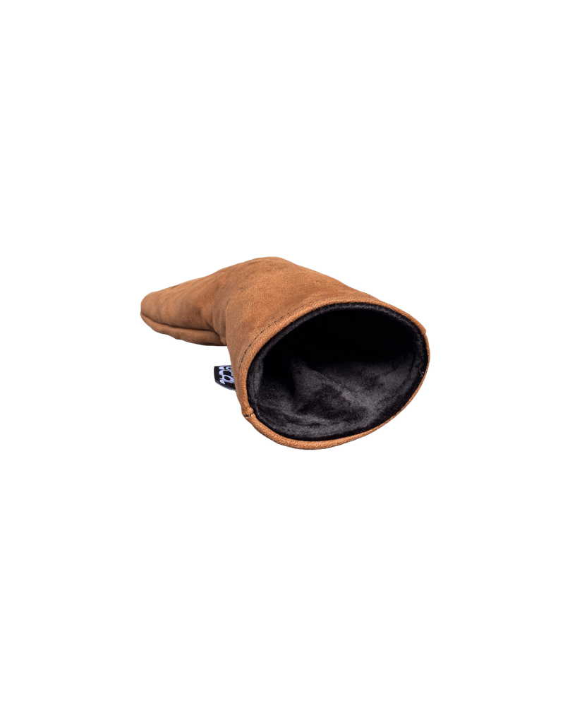 Handcrafted from premium Italian waxed Cabretta leather, this slip-on mitt style headcover brings a sense of quiet refinement to the course. The tanning process gives each piece a rich, lived-in patina from day one — a finish that softens and changes with every round. Designed to fit drivers, mini drivers, fairway woods, and hybrids, it’s detailed with our Time of Leisure dove embroidered in brown, a quiet emblem of freedom and unhurried days. Inside, a plush black lining protects your club
