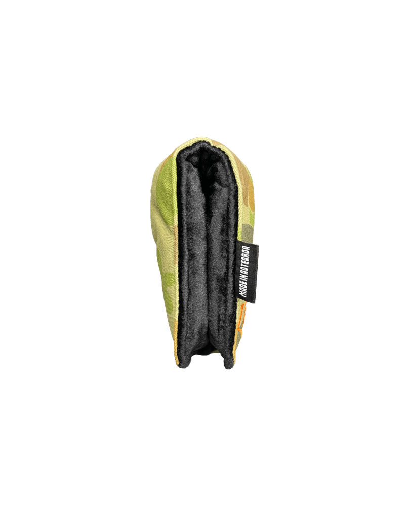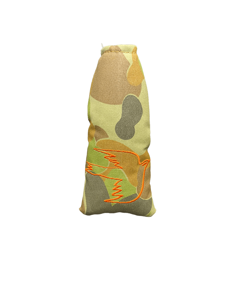 Finished with our Times of Leisure script and dove embroidery, this blade putter cover is made with a heavy camo canvas used by Australian forces, built for durability and style. The plush black lining provides superior protection, while the magnetic closure ensures a snug, secure fit. Built to withstand the elements this is our heaviest canvas available.
